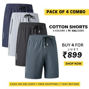 Beat the heat this summer with the Combo of 4 Men's Stretchable Cotton Shorts , designed to keep you cool, comfortable, and stylish.